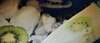 3) Dressez les assiettes : Répartissez les tranches d'agumes sur 6 assiettes.Concassez les cacahuètes et lavez les feuilles de manthe. Répartissez-les sur la carpaccio. Servez aussitôt avec la vinaigrette. Dégustez.
